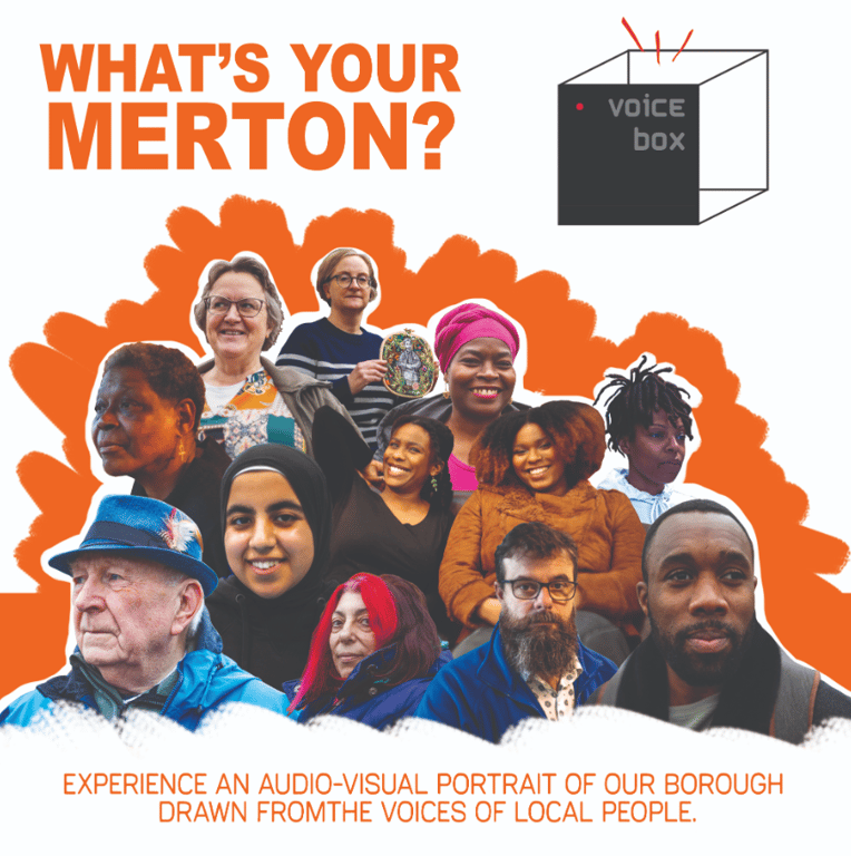 Merton Voice Box is an audio-visual portrait of three areas in the London Borough of Merton: Mitcham, Colliers Wood & Pollards Hill. Portraits, voices and sounds were recorded in conversations between the artist and twelve local people who agreed to participate and give some of their thoughts and experiences of what dignity, pride, community and impact means to them.